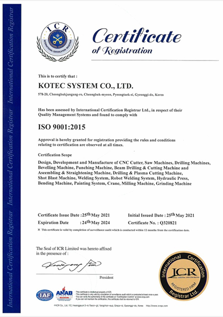 Patent Certificate (H-Beam 5-Axis Drilling Equipment)